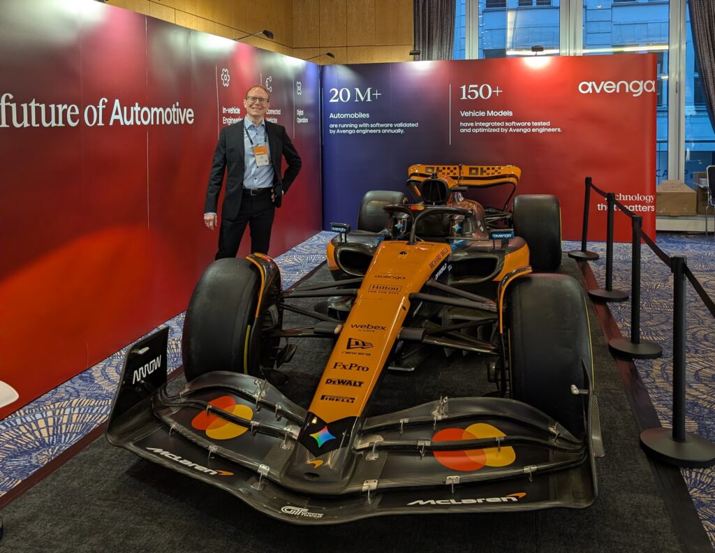 No automotive conference is complete without a car on the show floor. There was one at SDV Europe as well, as you can see in this picture featuring the blog author: